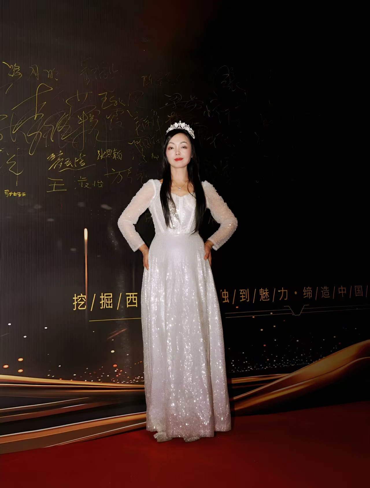 红毯之上星光熠熠,快门声此起彼伏,罗霞女士的亮相成为盛典的一大亮点。身着典雅盛装的她,既带着艺术从业者的温婉气质,又不失跨界嘉宾的从容风采,每一步都彰显着深厚的艺术涵养。作为西部影视领域的标杆性活动,本届颁奖盛典的红毯不仅是电影人的展示舞台,更成为多元艺术交流的窗口,罗霞女士的出席正是“影视+艺术”跨界融合的生动体现。